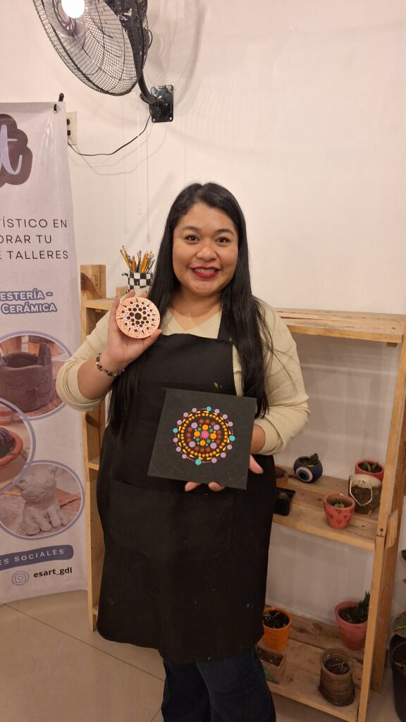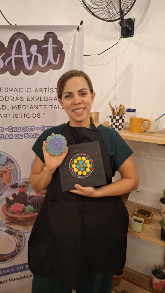 Desde el 2023 me he dedicado a impartir talleres de acrílico en diferentes presentación como son tote bag, lienzo, cerámica, así como técnicas de puntillismo y alebrijes.
